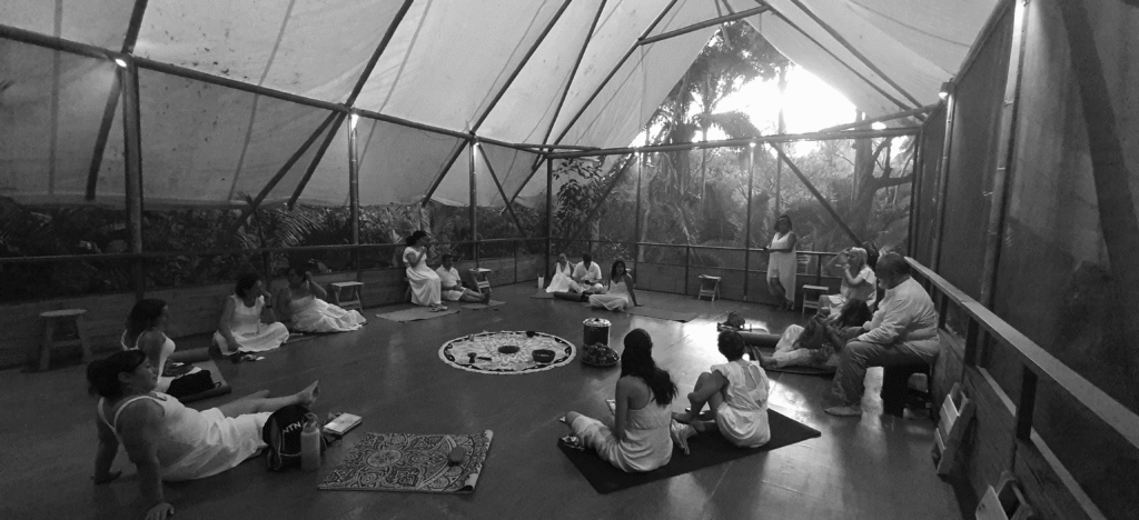 Todo esto lo facilitamos en un espacio vivo, honesto, natural. Nuestro centro ecológico de retiros Aldea Bamboo, inmerso en la selva y a pasos del mar, no es solo un lugar: es parte del proceso. La naturaleza aquí no es decorado, es medicina. El canto de las aves, la humedad de la tierra, el ritmo del oleaje, la ausencia de ruido artificial… todo coopera para que el cuerpo vuelva a confiar, a sentir, a aflojar.