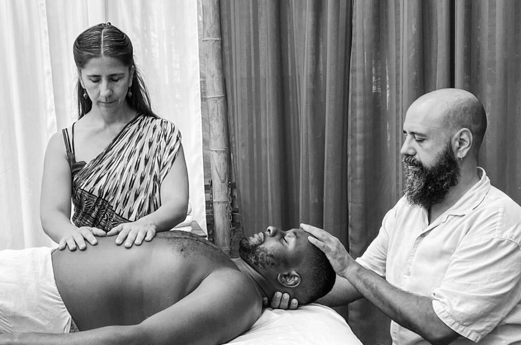 Fue el encuentro con sus maestros Álvaro, curandero zapoteca, y Catherine, osteópata francesa, lo que consolidó su enfoque actual: una sanación integral y tradicional que ahora imparte tanto de forma individual como en conjunto con su pareja Adriana, retomando la antigua práctica de sanar “a cuatro manos”, como lo hacían sus mentores.